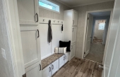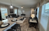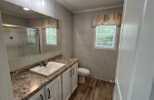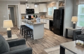 The Camden singlewide has a little bit of everything. With 1140 square feet on living space this home is a great size for most people. The open great room feel is perfect for entertaining. The kitchen has a double window over the kitchen sink, a large island that can sit at least 5 people and a full appliance package including dishwasher and microwave. The Living Room and Kitchen has a total of 7 windows so there is an abundance of natural light. The Utility area has a separate freezer area as well as a huge bench area with coat hooks and double pantries. The Master bedroom has a private bath with a walk in shower as well as a large walk in closet. This home is a must see and is now on display