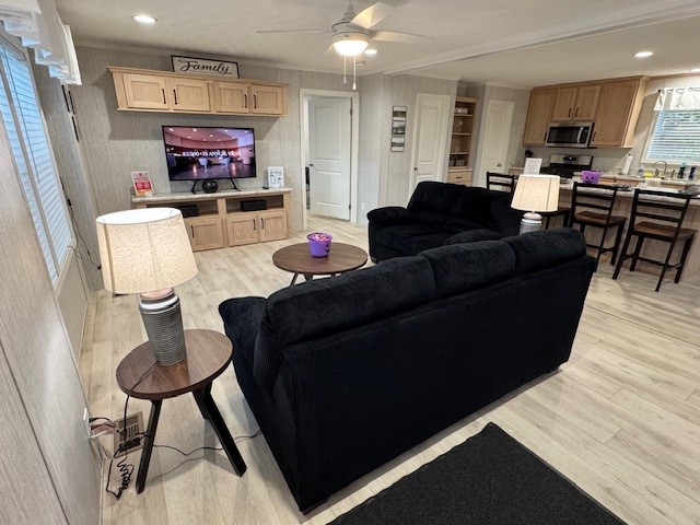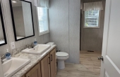 Welcome to the Watertown, a spacious and wonderful new home built by Commodore. This 3 Bedroom/2 Bath, 1600 Sq Ft manufactured home has two living rooms, an oversized eat-in kitchen island and a coffee bar area! You can’t miss the huge walk-through pantry. Right off the front living room is the primary bedroom with an attached bathroom that is spa like and luxurious. Relax after a long day in the large free standing soaking tub or the tile shower! There are double sink vanities and a walk-in closet. Privacy from the primary bedroom is easy with the location of two spare bedrooms on the opposite side of the house, along with a full bathroom. The utility/laundry room features cabinets with a sink for easy clean-ups, an exterior door and laundry hook-ups. More features include a bumpout double dormer at the front door with vertical accent siding. Come take a tour today!